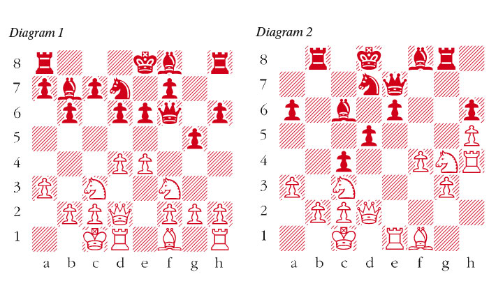 1 d4 Nf6 2 Nf3 e6 3 Bg5 h6 4 Bxf6 Qxf6 5 e4 b6 6 a3 The idea of this is to be able to play Nc3 without fearing … Bb4, and then castle queenside. 6 … Bb7 7 Nc3 d6 8 Qd2 Nd7 9 0-0-0 g5 (diagram 1) This caused some astonishment at the time, although with the passing of the years this idea no longer comes as a surprise in such positions. It prepares … Bg7, but White must also must be on his guard against the … g4 thrust. 10 Nb5 Kd8 Giving up the right to castle and thus quickly coordinate his pieces, but it is almost forced and is not easy for White to exploit it. 11 h4 g4 12 e5 Seeking to open lines to try to exploit the situation of the black king. 12 … Qg7 13 Ne1 a6 14 Nc3 d5 15 f4 f5 16 exf6 This opens the position for Black’s bishops, but also exposes Black’s weaknesses on e6, e5, etc. 16 … Qxf6 17 h5 c5 18 dxc5 bxc5 19 g3 Bc6 20 Rh4 Rg8 21 Nd3 Rb8 White wants to capture the g4-pawn and Black is preparing his counterplay against the white king. 22 Nf2 c4 23 Nxg4 Qe7 The threat is to win immediately with 24 … Qxa3! 24 Re1 (diagram 2) 24 … Rxb2 A good decision; objectively it is not winning, but White has to defend very well, and that is not a simple task. 25 Kxb2 Qxa3+ 26 Kb1 Bg7 27 Ne5 Closing the long diagonal is not sufficient. It was essential to play 27 Re3! and although this looks bad and Black has several attractive possibilities, there does not appear to be anything decisive: for instance, after 27 … d4 28 Nb5 Qc5 White seems to hold miraculously with 29 Qa5+! Ke7 30 Na7!! Rb8+ 31 Kc1 Qxa7 32 Qa3+ Nc5 33 Re5! Bxe5 34 Nxe5. 27 … Kc7 With his previous move Black also made way for his rook to transfer to the queenside. 28 Nb5+ This closes the b-file, but Black is now only the exchange down and the attack is still raging; now the a-file is opened up. 28 … axb5 29 c3 Bxe5 30 fxe5 Rxg3 31 Rh3 Rg5 32 Rhe3 Nc5 33 Rf3 Be8 Controlling f7. Black has no need to hurry, although here he could have played 33 … Na4, since 34 Rf7+? Kb8 35 Re3 loses to, amongst other things, 35 … d4 36 cxd4 Be4+. 34 Qa2 Qxa2+ 35 Kxa2 Rxh5 36 Ka3 Ne4 37 Rf8 Bd7 38 Kb4 Rxe5 39 Ra1 Rf5 40 Rh8 The endgame after 40 Rxf5 exf5 41 Bg2 h5 would be sheer torture for White, but the move played loses more easily. 40 … Rf2 White resigns There is no defence against 41 … Rb2+: 41 Rb1 Ra2, or 41 Ra7+ Kb6 42 Rxd7 Rb2+ 43 Ka3 Rb3+ 44 Ka2 Nxc3+ and mate next move.