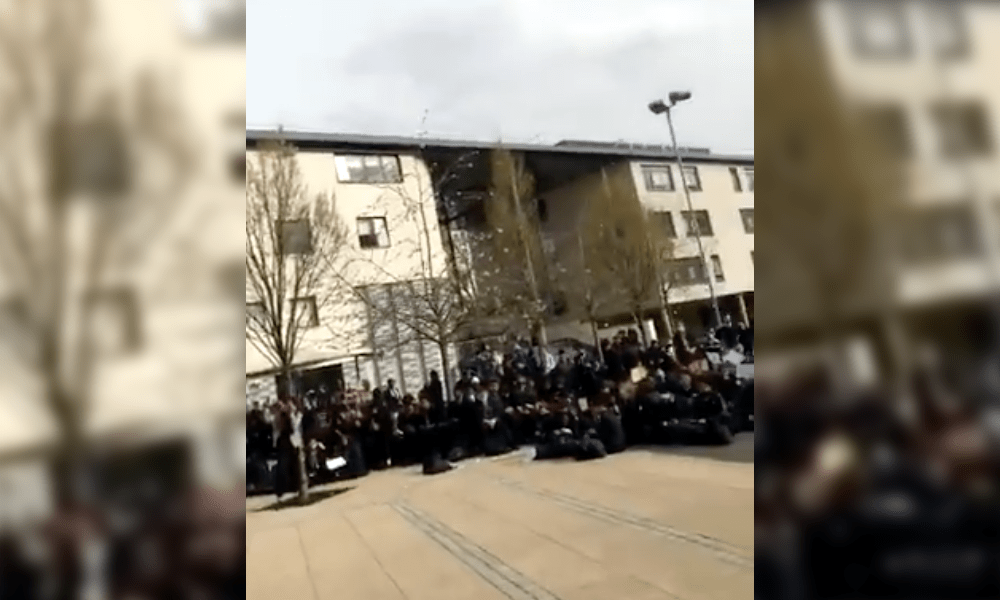 Pimlico Academy students stage a sit-in outside the school (image from Twitter)