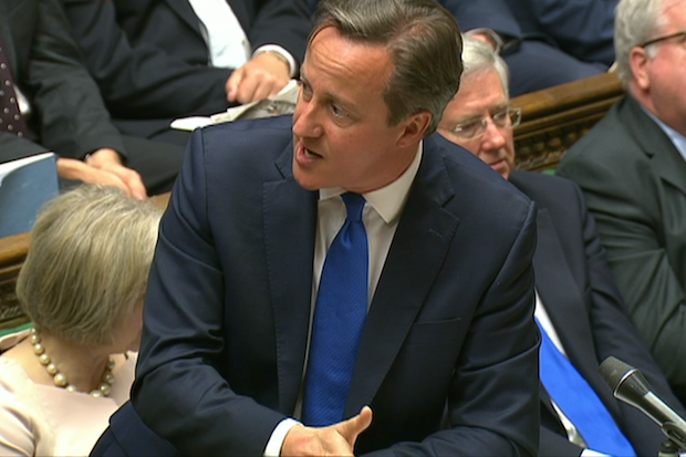 Harman announced that Labour was now backing a third runway, and challenged Cameron to do the same. He dodged, hiding behind the threat of judicial review. Harman then cracked a series of good jokes at his expense, chastising him for ‘being bullied by Boris’ out of doing the right thing for the country. Harman leaned across the despatch box and mockingly declared, ‘He’s in a holding pattern above Heathrow and Boris won’t let him land.’