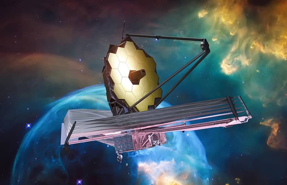 In the deep and trackless spaces wait the fragments of a Bang: the Universe goes through its paces, free from sturm, devoid of drang puts its best face forward, smiling, lolls in sheen and unseen light, welcomes – oh it is beguiling! – this paparazzo neophyte: hanging in a distant orbit, unfolding its beryllium lens. To capture time, it must absorb it, show us what the past intends: watching nebulae reverse and galaxies in utero – it blinks, a cosmic sphinx, immersed in how the dusty clusters grow. Bill Greenwell