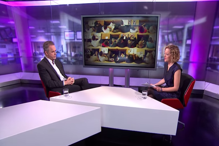 Almost eight million people have now watched Cathy Newman’s Channel 4 News interview with Jordan Peterson. This figure must be unique in the history of Channel 4 News online. Only a few minutes were broadcast on the original news programme, but Channel 4 then put out the full half-hour on YouTube, perhaps miscalculating the effects of watching the allegedly ‘transphobic’ Canadian clinical psychologist whose book 12 Rules for Life is selling out. I think what the majority of the eight million appreciate is that Peterson’s performance is noble. He attempts a clear exposition of his views about the differences between women and men. Despite every effort by Cathy Newman, he succeeds. Her method is to try to reduce his nuanced remarks to a hostile caricature, so she begins sentence after sentence with ‘What you’re saying is…’. He is never saying what she says he is saying, and he patiently explains why. It is riveting. I don’t agree with those who say that Cathy Newman is being nasty. There is a moment when Peterson catches her out about what it is to be ‘offensive’ and cries ‘Gotcha!’: she charmingly admits she is flummoxed. Her problem is rather that she is in thrall to certain received ideas and therefore literally cannot understand Peterson. Auden ends his great poem on the death of W.B. Yeats with the lines ‘In the prison of his days/ Teach the free man how to praise.’ Jordan Peterson is that free man. Poor Cathy Newman is the prisoner of the age.