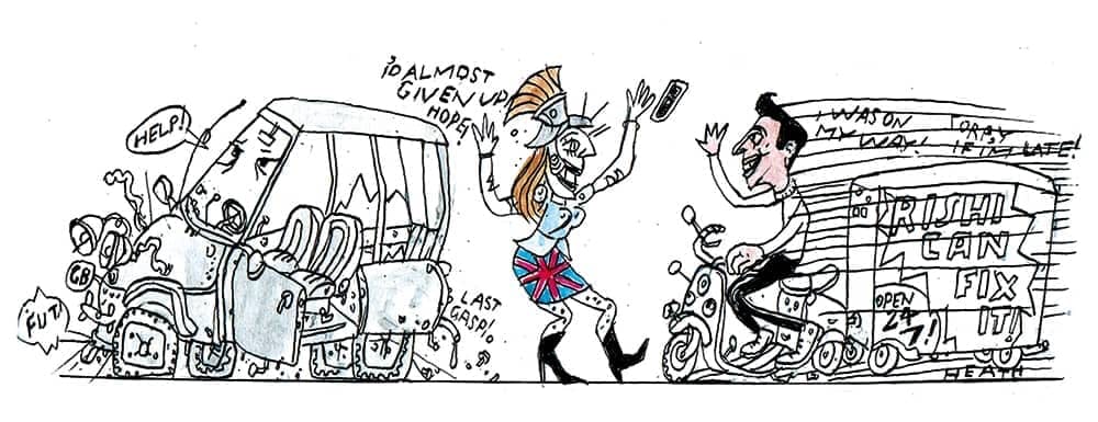 Rishi Sunak, aged 42, became Prime Minister. At the weekend Boris Johnson had flown back from a holiday in the Dominican Republic in response to the resignation of Liz Truss. She said she could not ‘deliver the mandate on which I was elected by the Conservative party’. The 1922 Committee devised a hurdle of 100 nominations for any MP to be considered as leader, with secret ballots of MPs and, if two candidates remained, an online vote by party members. It was thought that if Mr Johnson secured 100 votes, the membership would elect him. At 9 p.m. on Sunday, the day before nominations closed, he withdrew from the contest. Next day, a minute before nominations closed, Penny Mordaunt withdrew. So Mr Sunak won. Political commentators noted that Mr Sunak was a Hindu of Indian heritage. In a short, stilted speech on becoming party leader, he said: ‘I pledge that I will serve you with integrity and humility and I will work day in, day out to deliver for the British people.’ As Prime Minister, after kissing hands with the King, he said of his predecessor’s six weeks in office that ‘some mistakes were made’. He added: ‘I have been elected as leader of my party, and your Prime Minister, in part to fix them.’ He promised stability and confidence, integrity, professionalism and accountability.