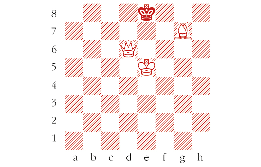 Last week’s solution 1 Bb5+ Ke8 2 Rg3! wins one of the bishops. Not 1 Rg3 Bc6! or 1 Bc4 Rf6!