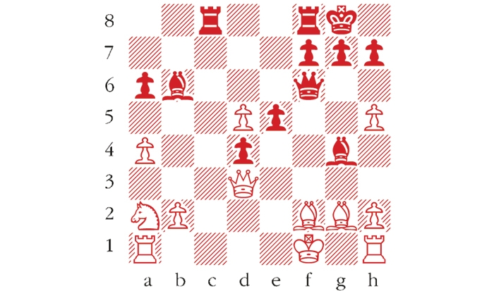 Black to play. This position is a variation from So-Aronian, St Louis 2015. How can Black conclude the attack? Answers to me at The Spectator by Tuesday 15 September or via email to victoria@spectator.co.uk or by fax on 020 7681 3773. The winner will be the first correct answer out of a hat, and each week there is a prize of £20. Please include a postal address and allow six weeks for prize delivery.