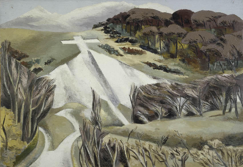 The theme of the second room is ‘A Path through the Elements’ and here are featured some of the lyrical and visionary landscapes for which Nash is rightly celebrated. Landscape is not drawn topographically, from the outside, but from within, as the artist identifies with his surroundings and translates them into lasting metaphors. So we have here the Dymchurch pictures, including the unfamiliar ‘Wall against the Sea’ and ‘The End of the Steps’ (both 1922), and such early delights as ‘The Wanderer’ and ‘The Orchard’. In the third room, titled ‘Elements as Refuge’, Nash’s tendency towards geometric distillation reaches its theatrical peak in ‘Landscape at Iden’ (1929), but is balanced by the exquisite and unaffected poetry of ‘Wittenham Clumps’ (1911–13), ‘Landscape at Pen Pits’ (1937), and a selection of Nash photographs and collages.
