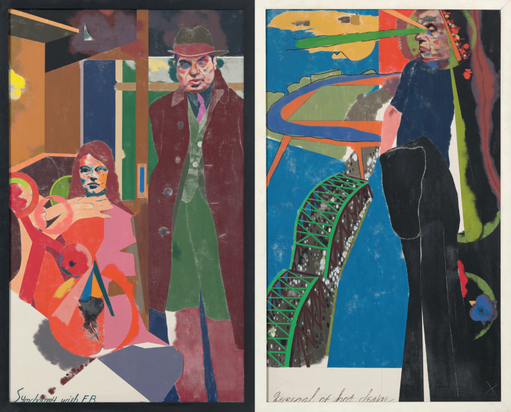 ‘What Happened’ would make a good subtitle for this show too. Who knows what’s going on in the pop arty diptych ‘Synchromy with F.B. – General of Hot Desire’ (1968-69) featuring Francis Bacon turned out like a dandified mafia don (see above). Is that Christine Keeler being throttled on the chair beside him? The meanings of what Kitaj called his ‘surreal-dada-symbolist strain’ of paintings are harder to unpack than their references, yet an image like ‘Junta’ (1962) has a clear political context. ‘I watch political events like I watch baseball and boxing,’ he said. ‘Very closely.’