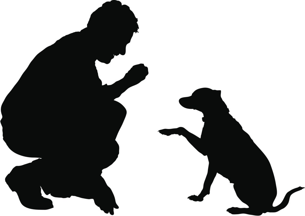 ‘UP!’ he yelled furiously at her. She batted the Lab with her paws. ‘NOW!’ She stood up and turned her back on him. ‘SIT!’