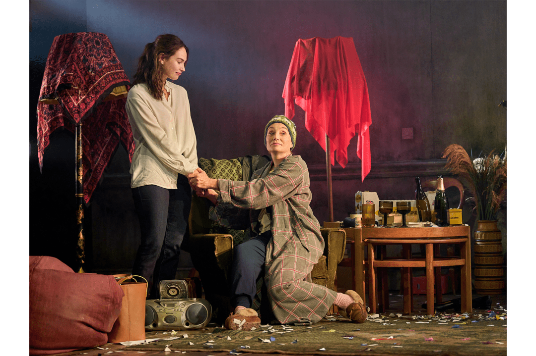 Lyonesse by Penelope Skinner takes a while to get going. The central character, Elaine, is a washed-up British actress (Kristin Scott Thomas) who lives in a crumbling mansion in Cornwall where she dreams of making a comeback as a movie star. She contacts a clueless researcher, Kate, and asks her to drive down from London to write a screenplay about her reclusive existence in the sticks. Kate meets Chris, a mixed-race lesbian poet who works as Elaine’s chauffeur, factotum, and companion. Chris also keeps the moths away from Elaine’s collection of 12 dead parrots, stuffed and caged.