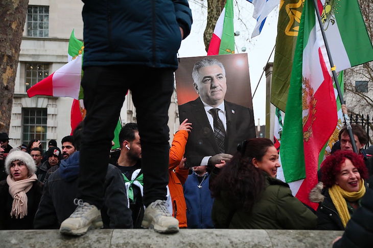 Protestors in London hold up a photo of Reza Pahlavi, the exiled son of Iran's last shah (Getty Images)