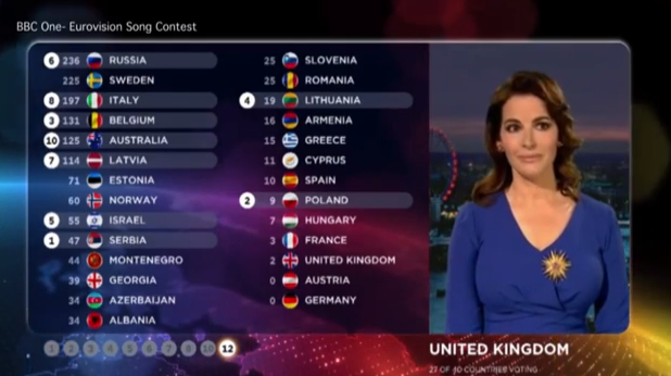 So when Nigella Lawson popped up on television to give Britain’s results, what had Britain decided? The UK vote is a 50/50 split between jury and televoting – and the Eurovision authorities have just given the breakdown. They show that British televoters went for the cute, joyful Lithuanian duet.