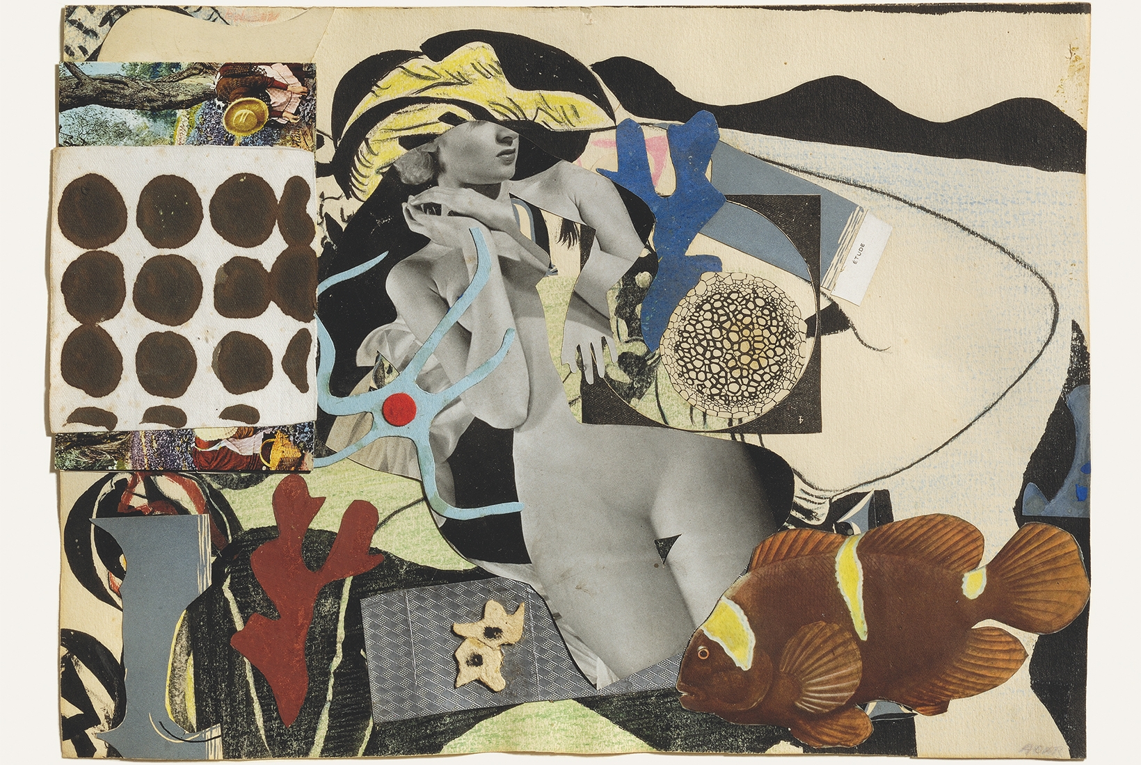 Upstairs, her black-and-white photographs of rocks at Ploumanach, taken in Brittany in 1936, show that nature needs no intervention to be rendered surreal. Her acrylic paintings of the 1970s feel flat and unsatisfying after the layering and accretions of the collaged works elsewhere. Still, in its richness and strangeness, its wildness and wit, this is a five star(fish) show.