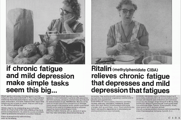 As the hilarious 1960s ad above suggests, Ritalin – the original trade name for methylphenidate, which gives you a nice fat squirt of dopamine – was originally marketed to bored housewives. The message: it makes peeling potatoes fun by helping you concentrate on the task. I can’t vouch for that, as I’ve never peeled spuds under its influence. I have, however, checked several hundred academic references for an academic book published by OUP while high on Ritalin. A task that I’d been dreading turned out to be GRIPPING. (The book was by me, by the way, and it’s an engrossing read – so long as you’ve got a ready supply of methylphenidate to hand.)