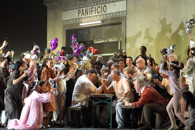 The director of the new Cavalleria rusticana and Pagliacci is Damiano Michieletto, the set designer Paolo Fantin, who created a sensation with Guillaume Tell. Nothing sensational about these two productions, which are set in and around a bakery (Cav.) and a theatre (Pag.) in Sicily in the 1980s, the eternal drabness and poverty of life being indicated by dull-coloured cardigans. Not a glimpse of the sun, though, and the tirelessly revolving sets seem to be in the void. Cav. came first, as always, and it’s a good thing it did, to get it out of the way for the enormously more rewarding Pag. Though you couldn’t complain much about the individual performances in Cav., the whole thing was musically too well mannered. Antonio Pappano drew refined playing from the orchestra, and the singers, again a strong cast, gave cultivated readings of their roles. But that’s just what Cav. doesn’t need. Listen to a recording from the Fifties or earlier, preferably a pirated live one, and you’ll hear just how vulgar this piece is — and also how exciting it is, so long as it is vulgar enough. Lovingly precise treatment kills it with respect, and that’s what makes this production so unaffecting. D.H. Lawrence, in the introduction to his translation of Verga, whose story provided Mascagni with his plot, says how much superior Verga is ‘to Mascagni’s rather cheap music’, and rightly calls him one of the greatest masters of the short story. The kind of satisfactions Verga provides are of course different from anything Mascagni could manage, not by being tasteful, but by achieving a rawness for which vulgarity is quite a decent substitute. There are plenty of memorable tunes in Cav., beginning with the prelude, including the Easter Hymn, the utterly irrelevant but adorable Intermezzo, and even the accompaniment to one or two arias, but they are not closely relevant to the action, at best providing local colour, but hardly doing that much. The characters are entirely generic — the philandering tenor, the deserted soprano, the vengeful husband — and Michieletto did nothing to make them more specific, so the results were equally unfocused, for all the enthusiastic and annoyingly frequent applause coming from the production team.