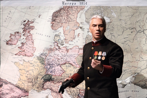 The inadequacies of the libretto, however, don’t excuse the limp production at Covent Garden. Set in a Balkan court just before the outbreak of the Great War (Oscar is being bundled off to the trenches as the curtain falls), the direction is seriously lacking. The principals mostly line up along the footlights and sing in a line; the chorus are blocked and immobile as if they were in an oratorio. The director, Katharina Thoma, has exercised her invention in adding some statues that come to life and strike poses, noticed or not noticed by the characters. She would have done better to have considered how the characters might behave towards each other.
