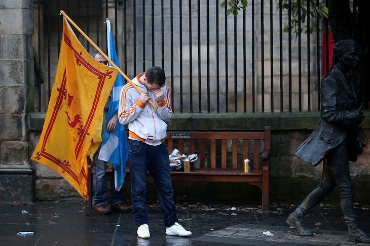 Dejected Yes vote campaigners make their way home along the Royal Mile after the 2014 referendum (Getty Images)