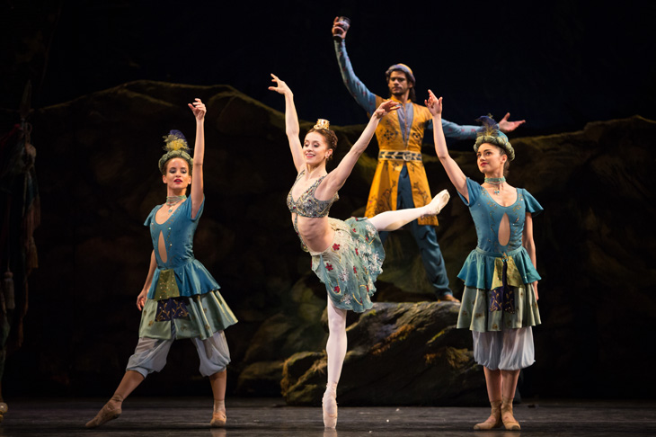 The shepherd Aminta is a bit of a wet rag, plot-wise. Sylvia only ‘loves’ him after Cupid’s intervention and he plays no part in her rescue from the kidnapper’s clutches. But debutant Vadim Muntagirov contrives to make a hero of him by the sheer beauty of his dancing, piloting Marianela Nuñez through Ashton’s unsparing pairwork and shaping his solos with unforced grandeur. Nuñez relished the darting leaps and made easy work of the toe-twisting pizzicato variation, but on the opening night she was let down by Simon Hewett’s unyielding, almost metronomic baton. Reece Clarke was an assured partner for the airy, Amazon-ian Lauren Cuthbertson and delivered his Act Three party piece with lordly bounce. Federico Bonelli was an elegant foil for Natalia Osipova’s witty, multifaceted Sylvia.