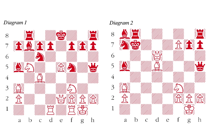 1 e4 e5 2 Nf3 Nc6 3 Bc4 Bc5 4 b4 Bxb4 5 c3 Ba5 6 d4 exd4 7 0-0 dxc3 8 Qb3 Qf6 9 e5 Qg6 10 Nxc3 b5 This is in Anderssen’s counterattacking style but 10 … Nge7 is safer. 11 Nxb5 Rb8 12 Qe3 Nge7 13 Qe2 Qh5 14 Ba3 Bb7 15 Rad1 Nf5 This overlooks the following combination (see diagram 1). 16 Rxd7! Kxd7 17 e6+ Kc8 After 17 … fxe6 18 Qxe6+ Kd8 19 Rd1+ wins. 18 exf7 Ba8 19 Nxa7+ In keeping with the swashbuckling style of the play so far but 19 Qe6+ Kb7 20 Rb1 was immediately terminal. 19 … Nxa7 20 Qe6+ Kd8 21 Rd1+ Nd6 22 Rxd6+ Further exuberance but 22 Bxd6 actually mates far more quickly. 22 … cxd6 23 Qxd6+ Kc8 24 Be6+ Kb7 25 Bd5+ (see diagram 2) 25 … Qxd5 The black king is chased to its doom after 25 … Kc8 26 Qe6+ Kc7 27 Qe7+ Kb6 28 Bc5+ Kb5 29 Nd4+ Ka4 30 Bb3+ Rxb3 31 axb3 mate. 26 Qxd5+ Ka6 27 Qc4+ Kb7 28 Qe4+ Nc6 29 Ne5 Ka6 30 Qc4+ Ka7 31 Bc5+ Rb6 32 Bxb6+ Bxb6 33 Nxc6+ Bxc6 34 Qxc6 Black resigns