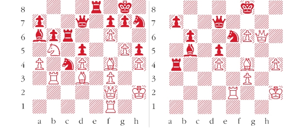 1 d4 Nf6 2 c4 e6 3 Nc3 Bb4 4 e3 0-0 5 Nge2 d5 6 a3 Be7 7 cxd5 exd5 8 Nf4 This is an improvement on the concluding game of the 1937 World Championship where Euwe (versus Alekhine) played 8 Ng3 allowing 8 … c5 9 dxc5 Bxc5 10 b4 d4. The point of 8 Nf4, as opposed to 8 Ng3, is to pressurise d5, thus preventing Alekhine’s freeing manoeuvre … c5. 8 … c6 9 Bd3 Re8 10 0-0 Bd6 11 f3 Qc7 12 Qd2 Bxf4 13 exf4 b6 14 b4 Ba6 15 b5 Black would be more than okay if he could arrange to exchange light-squared bishops. White’s play is designed to prevent this, holding Black down on the queenside. Meanwhile, White intends to set his mass of kingside pawns in motion to blast the black king. 15 … cxb5 16 Nxb5 Qd7 17 a4 Nc6 18 Rb1 Na5 19 f5 Nc4 20 Qf2 h6 21 g4 All according to plan. 21 … Nh7 22 Bf4 Na3 23 Rb3 Nc4 24 h4 Rac8 25 g5 h5 26 Kh2 Rc6 27 f6 (see diagram 1) A bold stroke to which Black’s best response is an equally bold 27 … gxf6. As played Black’s kingside is severely restricted and exposed to the eventual rolling up manoeuvre f4-f5. 27 … g6 28 Rbb1 Nf8 29 Rfe1 Rxe1 30 Rxe1 Ne6 31 Bg3 Nd6 32 Re5 If 32 Bxd6 Bxb5 followed by … Qxd6+. 32 … Nc4 33 Re2 Nd6 34 Re5 Nc4 35 Re2 Nd6 36 Qe1 Declining a draw by repetition White gears up for the final assault. The immediate threat is Bxg6. 36 … Nf5 37 Bxf5 gxf5 38 Qb1 Rc4 39 Qxf5 Rxa4 As the game reaches its climax White goes for the throat against Black’s king, leaving his queenside pieces to be hoovered up as a decoy. 40 g6 Bxb5 41 Qxh5 fxg6 42 Qxg6+ Kf8 43 Bf4 (see diagram 2) This is a brilliant concept which Black had doubtless overlooked. 43 … Nxf4 44 Re8+ Qxe8 45 Qg7 checkmate