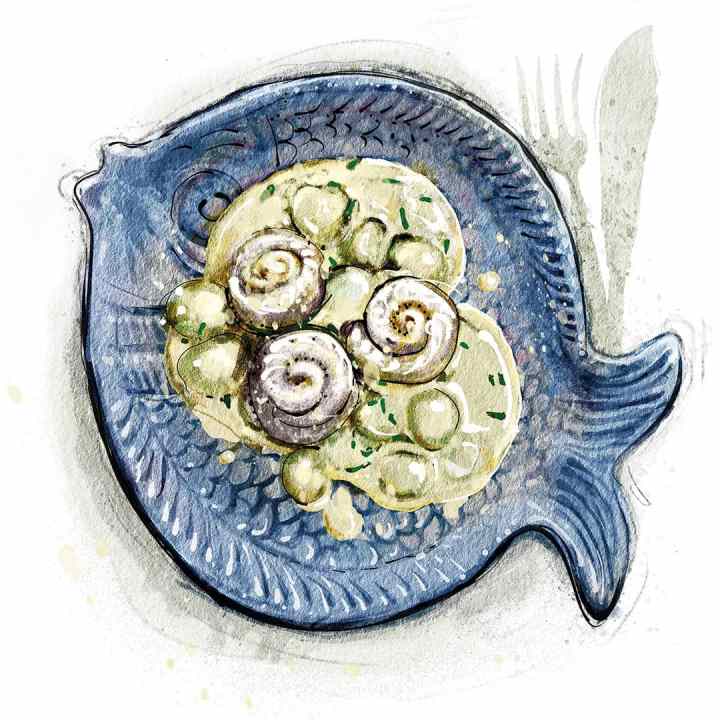 Like blancmange and chicken Marbella, sole Véronique tastes old-fashioned, but in the best possible way. That’s probably because poaching fish has fallen a little out of vogue – we do a lot more pan-frying now – but it’s a beautiful way of cooking fish ever-so-gently and imbuing both it and any sauce with fantastic flavour. I think we’ve become quite scared of cooking fish. It often comes complete with bones, skin and guts, requiring specialist knowledge to prepare. It’s expensive, and it doesn’t take kindly to being overcooked. This dish negates all of that: fillets can be bought ready to cook, and poaching has far more tolerance than the harsher heat of frying, almost inevitably creating moist and tender fish.