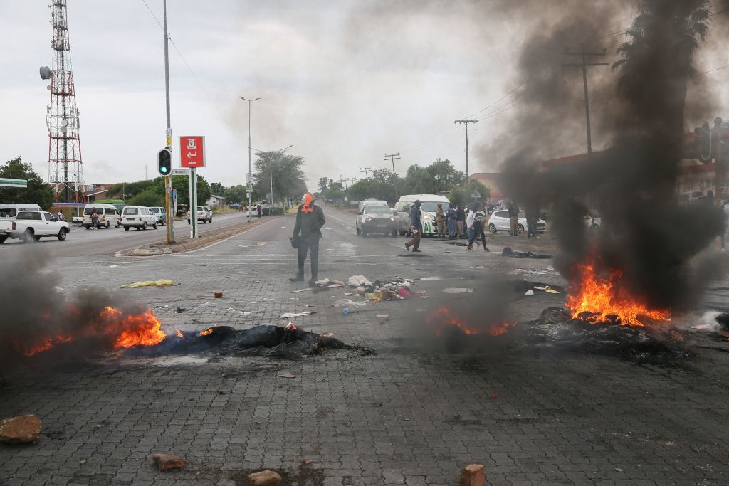A burning barricade during a protest against ongoing water and electricity outages in Soshanguve township, 1 February 2023 (Getty Images)