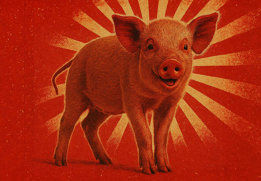 Napoleon’s office door opened and a trotter emerged. ‘Is there a stone in your hoof, Boxer? No? Remember, four legs good, unless four legs slack off. Shall I call the vet?’ Benjamin glared. Napoleon would write haranguing memos, then spend hours on his laptop watching pork porn.