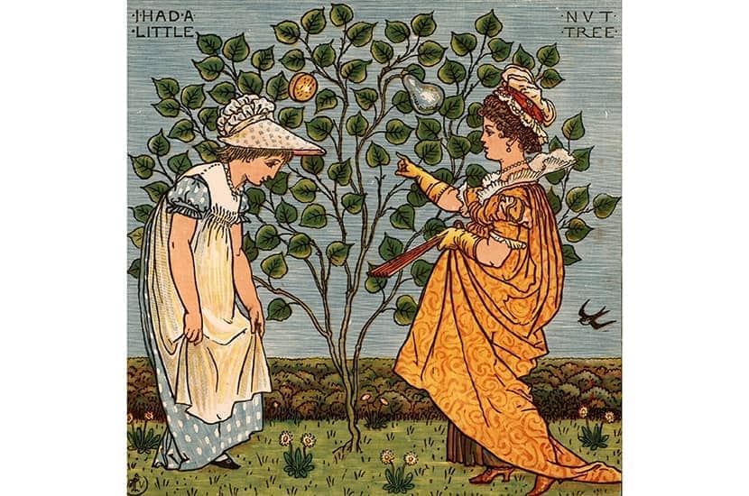 Myristica fragrans? ay, sirrah, but dwarfish; With an aureate drupe and an argentine seed, Such was my property: runty, a poor fish, Infertile, in want of a graft, that it breed. The Infanta, my visitant, made its acquaintance — Ay, madam, for that were her purpose, design. She embarked from Iberia, hastened from Spain hence, To ogle its branches, to own them in fine. The costumier’s work on her raiment, apparel, (To wit, on her dress) used the deepest vermilion; Her hair, sir, was black as an Ottery barrel. Was purchase in order? I acted reptilian. My tongue bathed in slather, my compliments fluent, I riposted, ‘Fair maid, my Penelope Cruz! Have my fruit, and my nuts, which are haply pursuant!’ And allowed her a graft in return for a schmooze. Bill Greenwell/‘I Had a Little Nut Tree’