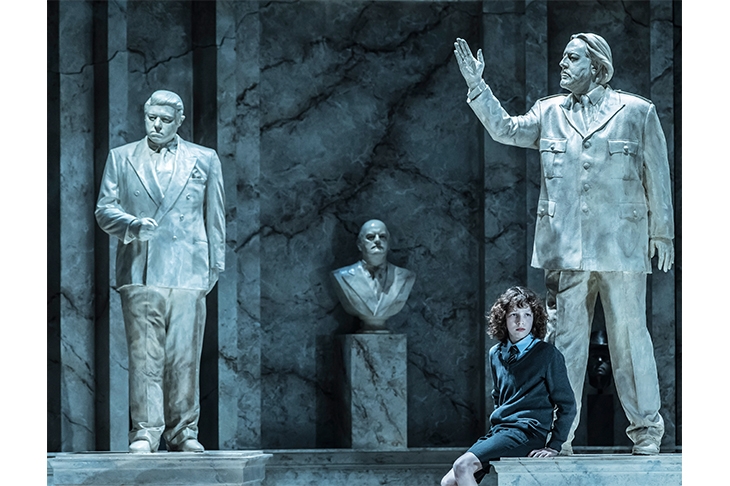 I shall certainly go to another performance of the piece, mainly in the hope of changing my mind. First time round I was unable to feel anything with or about any of the characters, apart from odd moments. When the unjustly accused Hermione, gloriously sung and acted by Sophie Bevan, uttered one of Shakespeare’s most desolate lines, ‘The flatness of my misery’, I knew what I was missing most of the time: the line is set to a low monotone, almost spoken, and left as Shakespeare wrote it — unlike, for instance, Florizel’s sublime speech to Perdita, of which we get fragments. I could have forgotten my reservations about the earlier parts if the final scene, with Paulina unveiling the ‘statue’ of Hermione and bringing her back to life, had been moving. Only the composer of The Magic Flute could have found music adequate for this scene, but that suggests that anyone else is foolish to try. The opera peters out rather than coming to a radiant close.