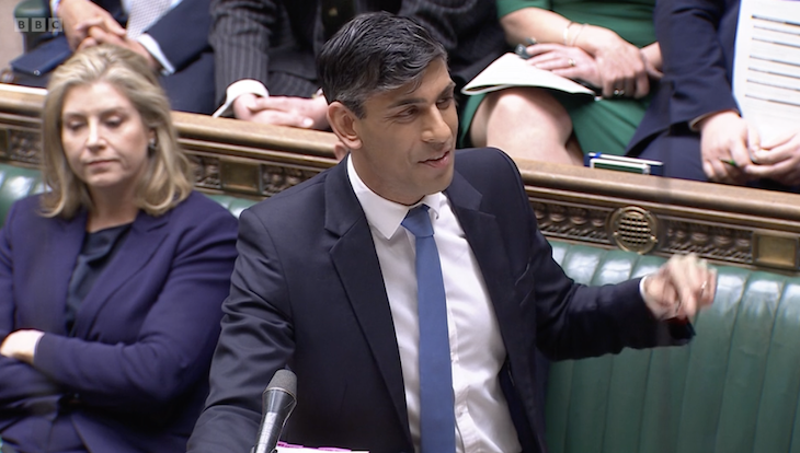 Today’s Prime Minister’s Questions was a classic knockabout between Rishi Sunak and Keir Starmer clearly written by their respective attack units. Both came armed with the sort of material you’d expect for a scrap: the Labour leader had a ‘rare unsigned copy’ of Liz Truss’s book, while the Prime Minister wanted to talk about Angela Rayner’s tax affairs. There were the familiar lines, too, including Sunak reminding the Commons of Starmer defending Hizb ut-Tahrir, and Starmer talking about his legal expertise.