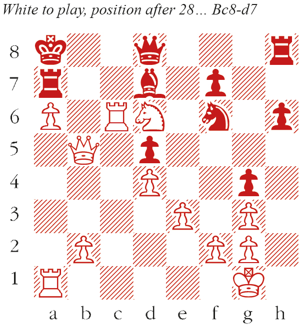 1 d4 Nf6 2 c4 e6 3 Nc3 d5 4 cxd5 exd5 5 Bg5 c6 6 Qc2 Be6 7 e3 Nbd7 8 Be2 After 8 Bd3, Black’s usual response is to play 8…h6 9 Bh4 g5 10 Bg3 Nh5 to exchange the knight for a bishop. Bd6 9 Bd3 Moving the bishop twice has a subtle point. When Sarana now plays as above with h6/g5, the move Bh4-g3 will trade off the Bd6 instead of the Nf6, which Praggnanandhaa considered a more desirable outcome. h6 10 Bh4 g5 11 Bg3 Bxg3 12 hxg3 Qe7 13 Nf3 g4 14 Nh4 Nb6 15 O-O O-O-O 16 a4 Kb8 17 a5 Nc4 18 Na4 Nd6 19 Nc5 a6 20 Rfc1 Bc8 21 Qb3 Nb5 Allowing a powerful breakthrough. 12…Ka8 was essential. 22 Nxa6+! bxa6 23 Rxc6 White’s attack is overwhelming. Rd7 24 Nf5 Qd8 25 Bxb5 axb5 26 a6 Ra7 27 Qxb5+ Ka8 28 Nd6 Bd7 29 Qb7+!! Exquisite. 29…Rxb7 30 axb7+ Kb8 31 Ra8 is mate, so Black resigns