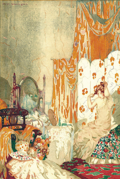 In 1918 John Lane published a new edition of the story illustrated by George Sheringham, now re-issued by Michael Walmer. The Slade-trained Sheringham (1884-1937) was a capable artist, best known as the designer for Gilbert and Sullivan productions and for London Transport posters. In The Happy Hypocrite his pastiche Yellow Book designs evoke the 1890s and, combined with the elegant Beerbohm narrative, add up to an entertaining period piece.