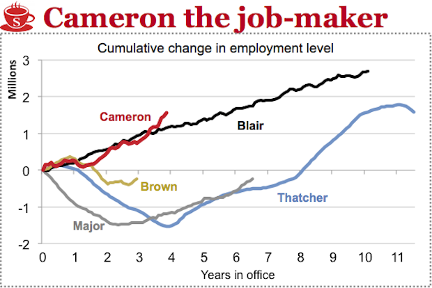 So Britain does have a a productivity problem. But the coalition’s reforms have meant we are witnessing what can fairly be described as a jobs miracle. The number in work is far exceeding George Osborne’s initial expectations – our work record is better than any G7 country other than Germany. Not a bad basis on which to fight the next election.