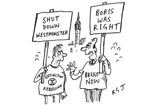 The foundation for this great elevation of the young was laid in the years after the 2008 financial crisis. Millennials looked at their parents — the lucky recipients of free education, affordable houses and decent pensions — and they felt quite understandably gypped. Where were their pension pots? Where were their lovely homes? The kids circled miserably around in the gig economy and felt themselves to be martyrs. It’s a small step from martyr to saint — and the referendum in 2016 was the perfect leg up. Suddenly there were our youngsters, bravely taking on the miserable, backwards-looking, old. And amid the Brexit fallout, up rose Greta like that hologram of Princess Leia: ‘How dare you? You’ve stolen my childhood.’ This was the moment at which sensible adult voices should have provided perspective. Settle down, kids, they should have said, and thank the Lord this isn’t the 14th century. The Black Death — now that really was a childhood stealer. Put down your placards and go back to school so you might learn to be of some actual use to the planet. Instead, the grown-ups flocked to Greta’s gang. ‘Yeah, bunk off school,’ they told their offspring. ‘You’ll probably have drowned before you get to A-levels anyway.’ It’s occurred to me to blame the strange adult appetite for teenage fiction for their adulation of the young. If grown-ups spend their spare time in a magical world full of prepubescent wizards, it probably makes sense to them to imagine some resourceful 12-year-old might solve the climate crisis. For any adult fan of Philip Pullman, it’ll seem only natural to see the world in a Manichaean light: the forces of evil — Trump, BP — lined up against the mystical innocence of children. Or perhaps it’s just a temporary alliance. Because of Brexit and because of our anxieties about plastic, left-leaning middle-class parents find themselves suddenly at one with their young. It suits us to talk disdainfully of ‘old gammons’; to park the Discovery Sport SUV at Swindon station and join the teens for a spot of Extinction Rebellion in Trafalgar Square. It makes us feel better about jetting off to the Maldives for a touch of winter sun. And it makes us feel young. No wonder our children are anxious. It’s not just that the icecaps are melting, but they also must see quite clearly that the adults aren’t making sense. Last week the UK’s own Greta, 19-year-old Ella Mann, wrote a letter to the Royal Shakespeare Company asking it to end its sponsorship deal with BP and organised it so that her letter was signed by schoolchildren across the country. A friendly reply from the director would have kept Ella happy, but after just a few days the RSC simply caved in. The kids are right, it said, and just jettisoned a long philanthropic association with BP without further debate. There were so many other, better and more adult responses. BP is heavily investing in renewable energy. It owns wind farms. Why not remind Ella of that? Why remind her that you can’t just turn the gas off without freezing millions of pensioners to death? Why not ask her and her friends to consider what exactly is wrong with companies with a bad rep doing community service, or if it’s even possible to find any corporate partner with a clean record? Greta thinks that capitalism is bad. Perhaps Ella does too. In kowtowing to the kids, the RSC has set itself a very tricky precedent. Is it going to refuse sponsorship from anyone who’s ever made a profit? Ella wrote: ‘We wish that the RSC would act on the ideas that they present in Matilda [a play for children about children] and not give in to the powerful oppressor.’ Well done, RSC. Truly you are the Mat-ilda of theatre companies. You’ve socked it to Miss Trunchbull, and now the BP–subsidised £5 ticket scheme for 16- to 25-year-olds is no more. If there’s a better example of how and why bending over to please kids is not in their interests, I’d like to hear it. This is not the fault of the children. Of course they bang drums, sit on roofs and declare the world to be doomed. It’s what they’re supposed to do. What’s strange is that so many grown-ups seem content to imagine that this is, in itself, an answer. Got a problem? Simply make like a teen and shout about it. Job done. When Greta turned to the Davos crowd and said ‘I want you to panic’, they should have asked her: why? Surely the graver the crisis the more important it is not to panic. If this is a battle to save the planet, the last thing you want is for the decision-makers to be in a state. Picture Churchill in his bunker in the spring of 1944. Picture an adviser popping his head round the door, then reporting back: good news guys, Winston’s hysterical with fear. Rising numbers of kids are being treated for eco-anxiety. I’ll bet it’s not really global warming that’s unsettling them so much as the complete absence of faith in their elders. With the fashion for presenting the young as gurus has come the idea that the elderly are intolerant and uninteresting — nothing but a drain on resources. We middle-class mid-lifers have put this about as revenge for Brexit. The old are just Leave-voting bed-blockers who’ve ruined the planet. But imagine hearing that, as a child, and believing it, and coming to think that your grandparents didn’t have their children and their grandchildren’s interests at heart when they voted in 2016. It’s an inversion of the truth. Anyone who’s lost their parents — even grandparents — understands the weird agoraphobia of growing older. When your parents fade out it leaves you with no covering; no buffer between you and the grave. That’s all very well in middle age, but imagine feeling that same disorientating aloneness when you’re 20 and believing that your elders aren’t your betters in any way. It’s an article of faith in the cult of youth, that because older voters have less life in front of them, t