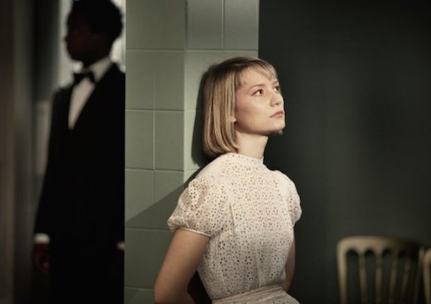 However, unlike Submarine, which was a coming-of-age comedy, this is dark. Exceedingly dark. It is based on Dostoyevsky’s novella of the same name, and stars Jesse Eisenberg as Simon James, a shrinking figure in a too-big suit whose loneliness is palpable, and who is barely noticed, timid, constantly trampled upon. (If Dostoyevsky hadn’t wanted him, I think Gogol would have snapped him up.) Ayoade sets up his character in the very first scene, when Simon is asked to get up from his train seat and obliges, despite the fact that there is no one else in the carriage. Throughout, the time and location are ambiguous. It could be the past, it could be the future, it could be the present, but set in a different, nightmarish, Stygian reality. The colours are black, grey and brown. There is no natural daylight, ever. The hand-held camera jitters then pulls in so claustrophobically close you can see the actors’ pores. (They have them! Who knew?) The soundtrack is cello, the dark end of the piano, high winds, the rumble of oncoming trains. It may be the joylessless of depression, externalised. It may be we are inside Simon’s headspace, understanding what he feels like. This is showing, not telling, which, in an ideal world, every film would do, but doesn’t.