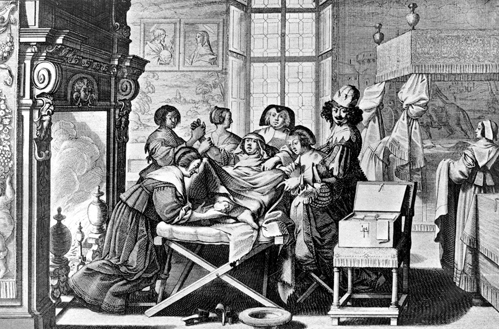 The Chamberlen family of male midwives were an extreme example of male proprietorship over the pregnant female body. They arrived in England from France in 1569, Huguenots seeking refuge, and brought with them a ‘machine’ that supposedly aided women in labour – who were blindfolded to protect the mystery of the device. Actually, what they had was a set of forceps – the kind of thing still used today when contractions alone won’t budge the baby. Had the Chamberlens made this public knowledge rather than focusing on private profit, it could have helped thousands of women. Instead, I can only imagine that the theatre they enforced led to the kind of distress that often slows things down dangerously.