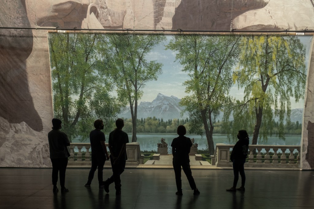 Pointing at a label that lacks a name, Lippman explains that it’s a mystery who painted much of the work on display. According to Lippman, the studios didn’t keep a record of who painted what, and when they were done with a backdrop, they stuffed it in a dank warehouse, where they didn’t even bother to write down what film the painting was used in. Hollywood kept such shoddy records that Maness and co-curator Thomas A. Walsh failed to identify which films some backdrops were painted for. Take the backdrop depicting a lavish staircase. Nobody could identify its origin until a guest recognized the backdrop from a scene in Hitchcock’s Marnie.