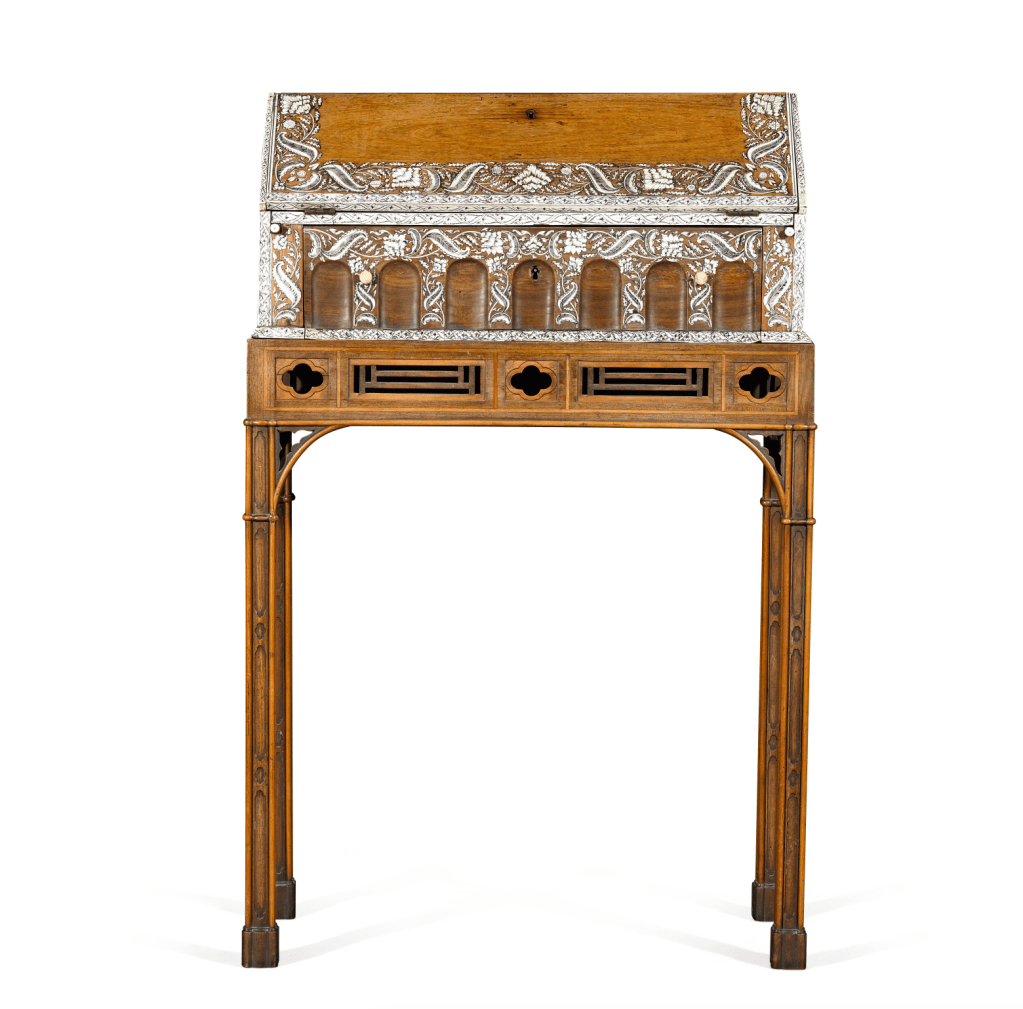 7. Bureau on Chippendale stand. This Indian laid miniature bureau was a Knatchbull heirloom – but the unique stand on which it sits is probably more noteworthy, having been specifically commissioned by the family from Thomas Chippendale (at a cost of £4). Estimate: £40,000 – 60,000.