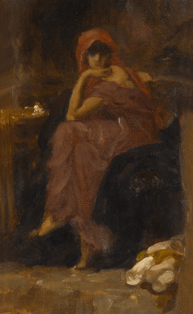 9. Sibyl, by Frederic, Lord Leighton. Lord Leighton is thought to have been inspired to paint this portrait of Sibyl, mythology’s wise and powerful woman, having seen Michelangelo’s depictions of five Sibyls from different cultures in Rome’s Sistine Chapel. Estimate £20,000 – 30,000