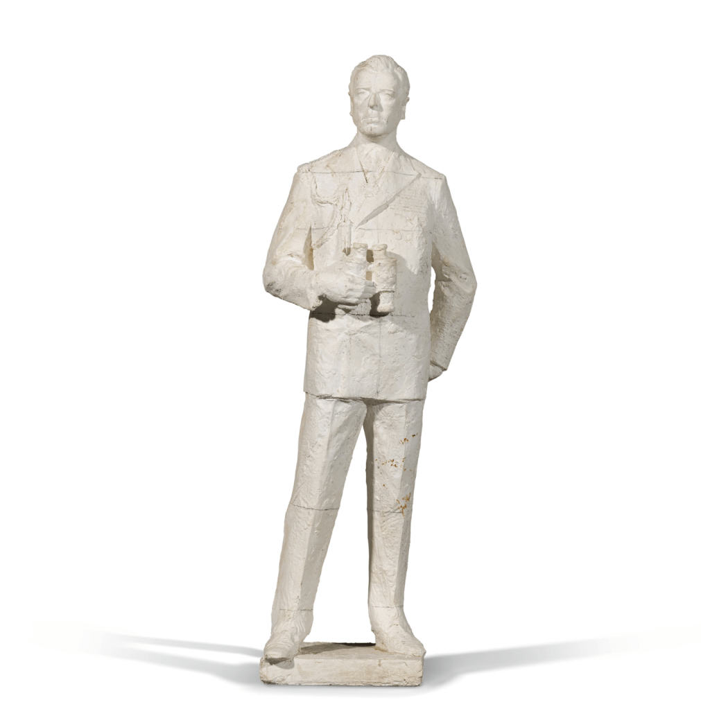 12. Lord Mountbatten maquette. This 72cm high maquette was a study for the nine foot five inch bronze sited at ‘Mountbatten Green’ off London’s Horse Guard’s Road. Created by Czech sculptor Franta Belsky and erected in 1983, its left leg hides a jam jar containing coins as well as press cuttings and details of the commission. Estimate £300 – 500.