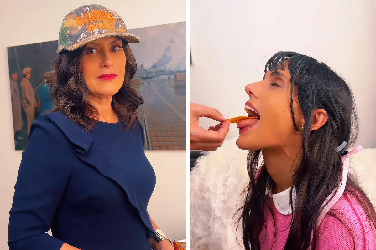 Big Gretch co-starred in a strangely sexually charged Instagram reel with thirty-seven-year-old Canadian journalist Liz Plank yesterday. Plank kneels on the floor as she is fed Doritos by the Michigan governor to a soundtrack of “Dilemma”; Whitmer, wearing a Harris-Walz camo hat, stares dead into the camera.