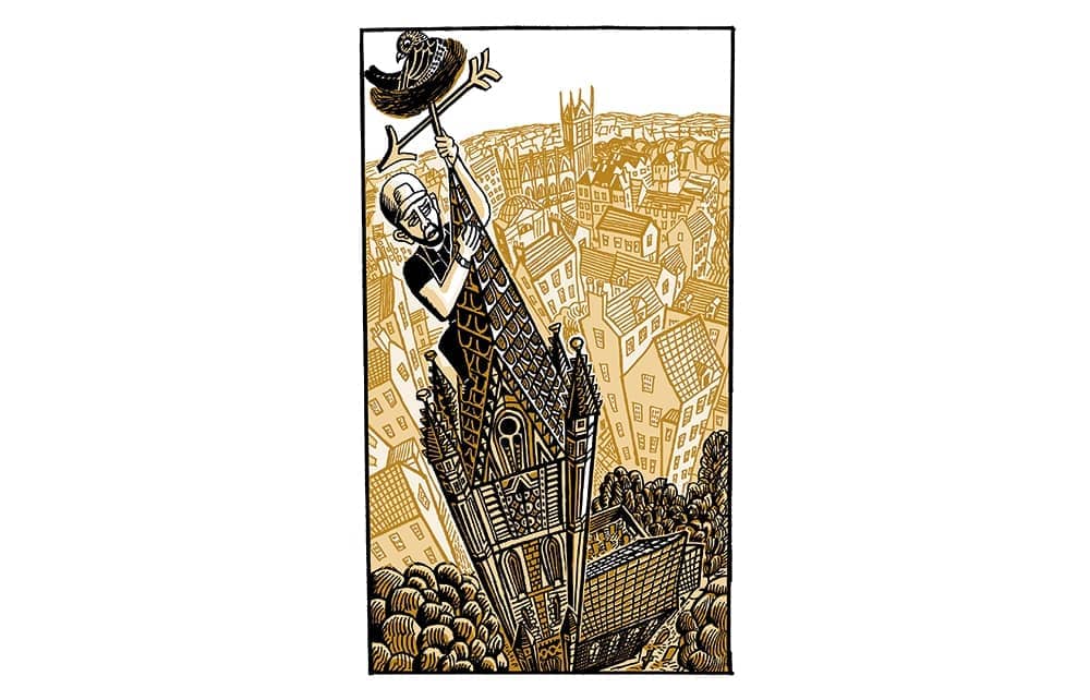 Done with care, he says, rope climbing is safer than working from a scaffold. But it’s still thrilling. ‘I love climbing church spires,’ he says. ‘As you progress up a church spire, the mass of what you’re climbing becomes smaller and smaller, and so you’re more and more exposed as you get up. It reduces up to nothing, and it never ceases to be exciting.’