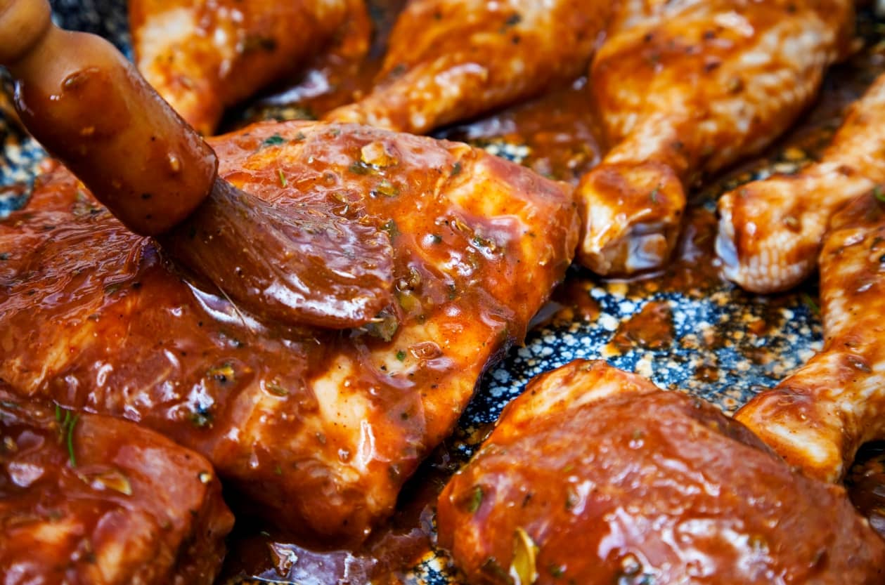 This sweet, tangy sauce is great with burgers and hotdogs or brushed over ribs, pork belly or chicken wings.