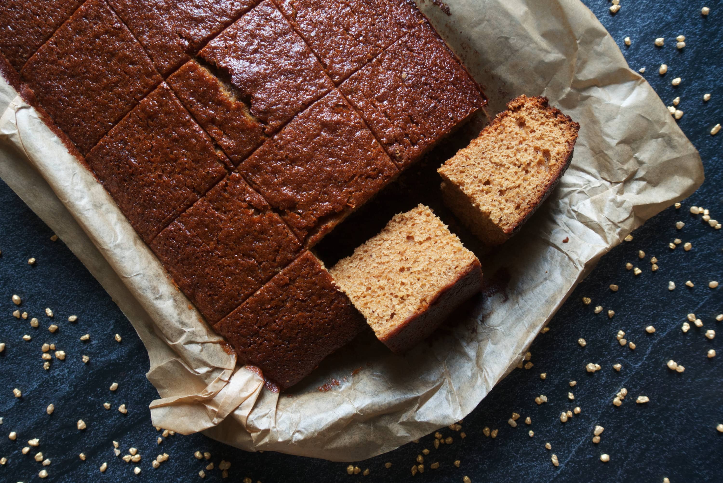 But look, perhaps you do want to bake something. You just don’t want to have to buy a thousand types of dried fruit, be tied to the stove for a whole day, or have to contend with making something look like a felled tree. Sometimes, you just want a nice cake that you can bung in the oven, and enjoy the same day. A cake that tastes just a little bit festive. So here is my old-fashioned gingerbread. It doesn’t even require you to cream the butter and sugar together: they are melted together along with the syrup, the eggs stirred through, and flour mixed with a generous dose of spice, and that’s it. And it has great shelf life: this cake is delicious on the day of baking, but will get better and stickier as the days go on, just keep covered with tin foil, or in sealed tupperware.