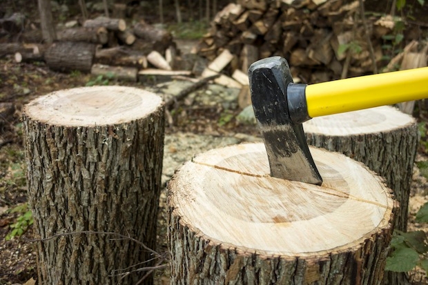 Until a fortnight ago there was a healthy, graceful, 70ft-specimen of Eucalyptus dalrympleana — or mountain gum — in the garden. Now there isn’t. Or rather, the remains of the trunk and branches are lying in sections on the ground. To knock a few quid off the tree surgeon’s bill, I’d grandiosely told them not to bother reducing the trunk and major branches to fire-grate-sized logs. Leave it in rings, I said, and I’ll split them up with an axe. Which they did. The next time I looked out, the men had departed and there were a couple of tons of wood lying in wheels in the sodden grass. The biggest rings, from the base of the trunk, were about two feet in diameter and a foot thick. Not a problem. A joy. I filed a razor-sharp edge on the axe-head, put the two biggest, knottiest-looking rings one on top of the other for a chopping block, and started swinging.