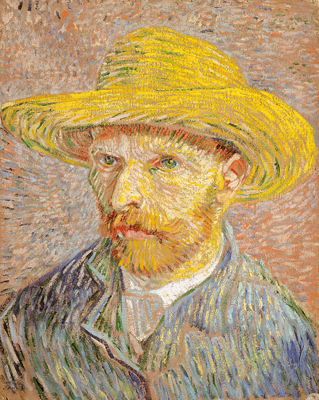 Vincent’s ‘Self-portrait with Straw Hat’ (1887) is rough and unsubtle, but all the elements are there. The brushstrokes are no longer ad hoc but dynamically directional, as if there’s a gravitational pull behind the whole composition obeying an invisible law, like iron filings responding to a magnetic field. He is also starting what he called ‘colour gymnastics’, based on his belief that complementary colours corresponded to the highest ideal form of earthly love, each fulfilling its potential through action with its opposite.