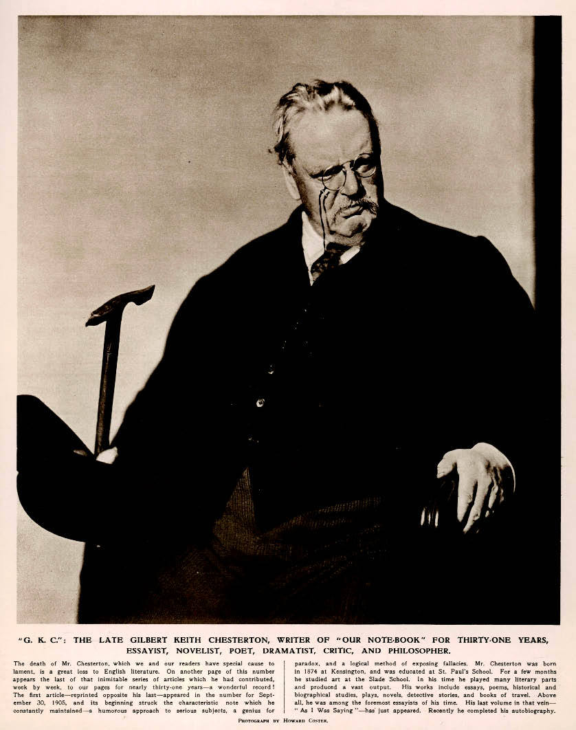 There are so many things wrong with this cluster of errors that you wonder how anyone of Chesterton’s intelligence could have advanced such a crazy conspiracy theory. If it had not been for the Quakers, he wrote, millions would still be alive. It would be incomprehensible that any sane person could write this sober, but as soon as you see the bottle at GK’s elbow you understand.