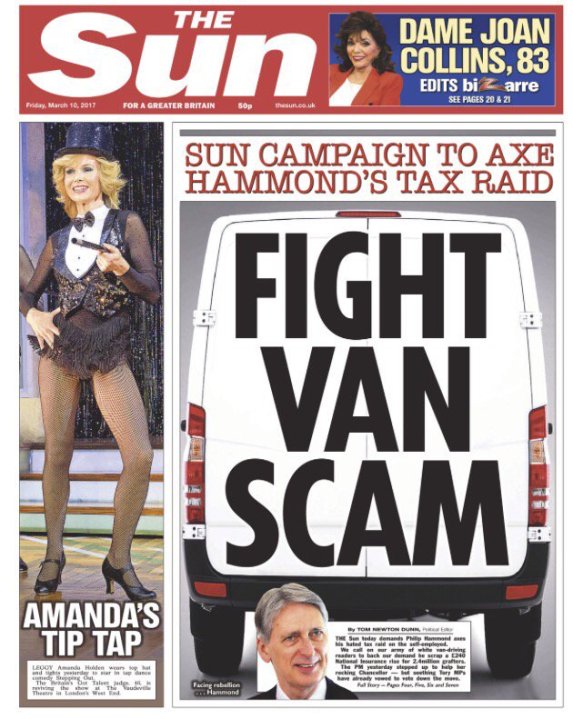 Theresa May and Philip Hammond were in a laughing mood in the Commons on Wednesday. After a second day of dreadful headlines in the newspapers, they certainly won’t be now. The Government’s honeymoon period in the media is over – and the Chancellor’s National Insurance hike for the self-employed is entirely to blame. So far, the Prime Minister has stuck to her guns by insisting the policy will go through (even if the PM did kick it back to the Autumn). If she really is to go through with the controversial policy – and the number of Tory rebels is growing – she’ll have to resist a mounting barrage of criticism in the media.