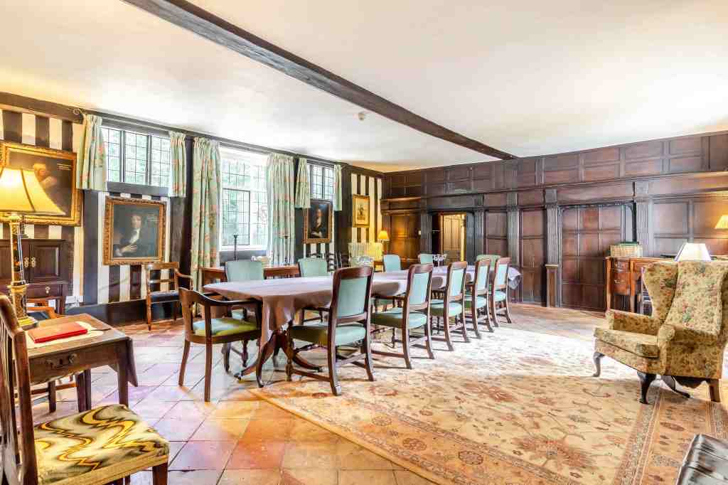 The house has six reception rooms, including this ‘particularly special’ panelled dining hall [Savills]