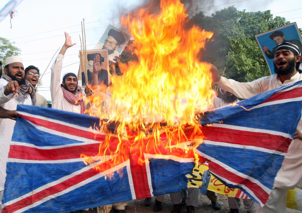 Personally, I can’t decide who was more hypocritical: Blair for dispensing a knighthood allegedly for literary services when it was for everything but or Rushdie, the übercritic of Britain, in accepting it. Either way, I think it’s a bit thick that it’s the effigy of our innocent Queen that is being burned.
