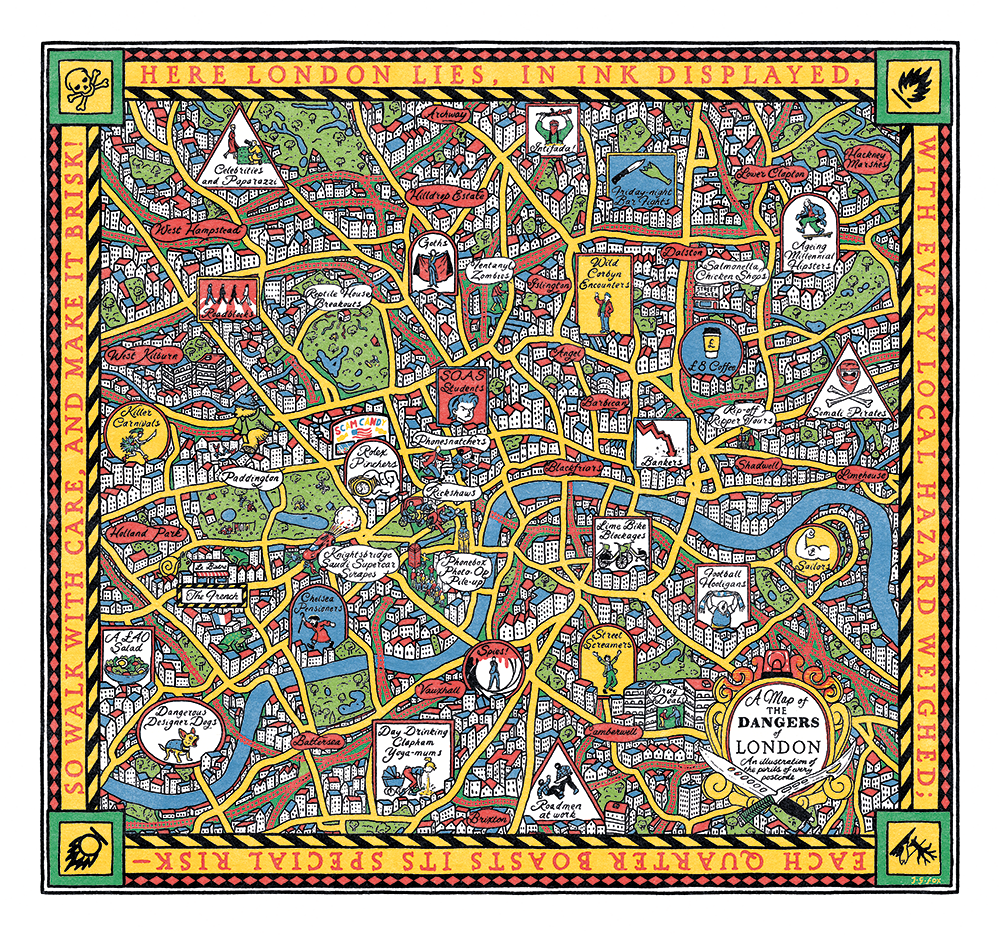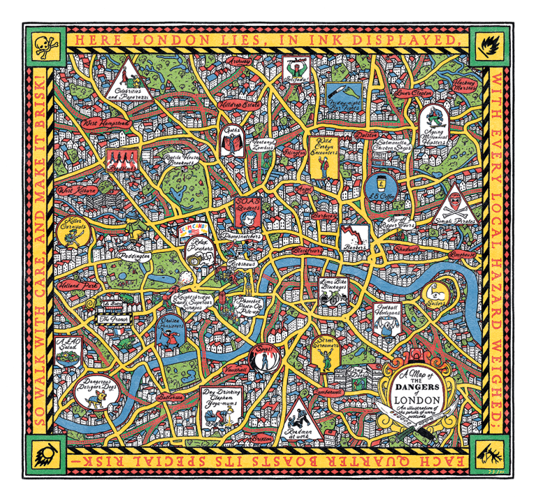 As much as I love London, like any true sceptical Londoner, I suspect bollocks. Look at the map by our resident artist J.G. Fox. Anyone considering the move should in fact be sniffer dog-aware of a multiplicity of perils. Those of us living here will already be familiar with them, but they might startle a novice.