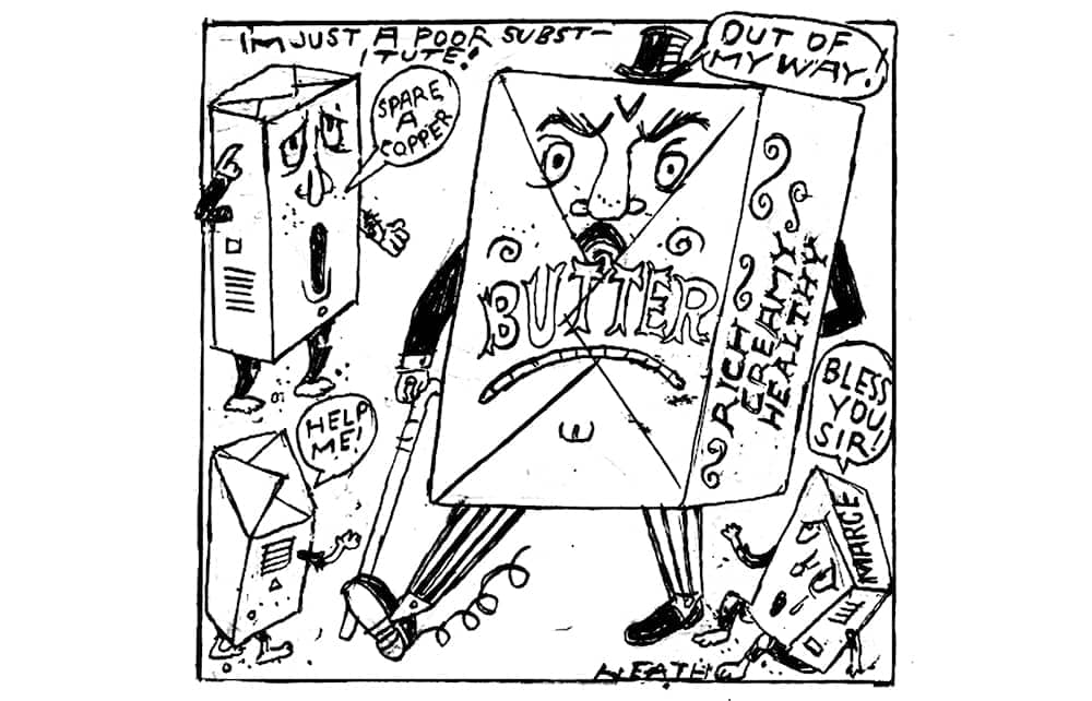 Instead, we had spread: margarine, rebranded as a cholesterol-busting alternative to heart-clogging butter. But spread wasn’t so bad. It lubricated my sandwiches and melted on my toast. Spread was everyday. Butter was for high days and holidays. Otherwise, we were all certain to die young.